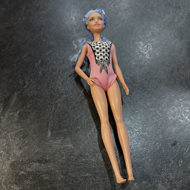 Poupee BARBIE avec maillot rose chevaux bleu ( pas chaussures)